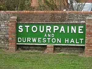Stourpaine & Durweston Halt was a railway station in the English county of Dorset. It was located between Shillingstone and Blandford Forum on the Somerset & Dorset Joint Railway. The station consisted of a small concrete platform and shelter.