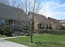 Due to the large demand for new housing to accommodate workers and later veterans the houses were designed to be sturdy but economic. Victory Housing employed a cheap and simple design. After the war many of these houses were maintained (and many remain into the twenty-first century), but newer versions improved on the basic format.[4] Much of the small building was prefabricated and then shipped to the sites to be constructed. This resulted in very homogenous and uniform developments that sprung up in almost every major city in Canada during the war and post war periods. The houses were often one and a half stories tall with gabled roofs and clapboard siding. The streets of these instant neighborhoods were often given names that recalled their place in the time following the war, such as Victory or Churchill.[5]