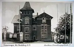 At the beginning of World War II The Germans occupied Strzemieszyce in September 1939 and immediately began to plunder Jewish homes and businesses and to demand free labor from them. At that time, about 2000 Jews lived in the town. Sometime in 1942, they were forced into a ghetto. In June 1942, 400 were sent to Auschwitz, where most were murdered. In March, 1943, the Germans rounded up the remaining Jews in the ghetto and murdered several dozen. Nearly all the rest were sent to Auschwitz. Only about 70 of the town's Jewish population survived the war.[1] During World War II Strzemieszyce Wielkie (under the German name Groß Strzemieszyce) was the seat of a German Amtsbezirk Strzemieszyce,[2] to which also several other communities (Strzemieszyce Małe, Strzemieszyce Folwark, Kazimierz, Niemce, Porąbka) belonged.