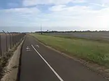 The bikeway crosses roads at-level near each of the five expressway exits. At two of these junctions, the bikeway crosses two roads — At Two Wells Road it also crosses Wingate Road which provides a local road crossing of the Gawler River and at Womma Road, the bikeway also crosses the north-south Heaslip Road. Several of the minor roads that were cut to create the Max Fatchen Expressway have a pedestrian and bike gate in the fence to provide access to the shared path from roads that do not have direct access to the expressway.
