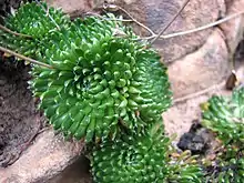 Stylidium soboliferum, commonly known as Grampians triggerplant or bristly triggerplant, is a species of flowering plant in the genus Stylidium. It is endemic to the Grampians region in Victoria, Australia. The leaves are about 1–2 centimetres (0.39–0.79 in) long and are arranged in a small rosette. The flowers, which appear on 5–15 centimetres (2.0–5.9 in) long stems, have white to pale pink petals with a darker colour on the reverse side. Plants occur along drainage lines and in moist areas amongst rocks.[2]
