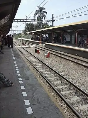 In the early 2000s, Sudimara Station had a total of 3 lines, with line 1 (as a straight track) and line 2 (as a turn track) used for passing and crossing, and line 3 used for overtaking trains. Since the operation of the double track on the Tanah Abang–Serpong railway as of 4 July 2007, the layout of this station has been overhauled by adding line 2 as a new straight line.[5] The old station building which is a legacy of the Staatsspoorwegen is still being maintained and the Train dispatcher room (PPKA) which is also part of the old station building is still in use today.