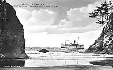 In 1906, the only regular shipping line running to Tillamook was the Pacific Navigation Company, owners of Sue B. Elmore.[17] There were only five commercial shipping vessels which crossed the Tillamook bar in 1906, two of which were smaller, Robarts (24 net tons) and George R. Vosberg (65 net tons).[17] Only three vessels larger than 100 net tons crossed the bar in 1906, the Elmore, Abbie (138 net tons), and Coquille River (265 net tons).[17]