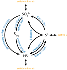 - ↑ Wasmund, Kenneth; Mußmann, Marc; Loy, Alexander (August 2017). "The life sulfuric: microbial ecology of sulfur cycling in marine sediments: Microbial sulfur cycling in marine sediments". Environmental Microbiology Reports. 9 (4): 323–344. doi:10.1111/1758-2229.12538. PMC 5573963. PMID 28419734.