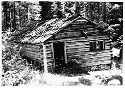 The Sulphide Cabin, also known as the Frisco Cabin, is a log cabin located along Bridge Creek Trail in North Cascades National Park, in the U.S. state of Washington. Constructed sometime in the 1920s by A.H. Peterson and his nephew, the cabin was a warm season residence used while Peterson worked his mining claim.[2] The cabin was constructed plainly of rounded hewn logs, half notched at the corners. The cabin has two rooms and is 18 by 25 ft (5.5 by 7.6 m) with a door at each of the two shorter ends above which rises a gable roof which is wood shingled.[2] Sulphide–Frisco Cabin was placed on the National Register of Historic Places in 1989 as it is the only remaining residence associated with mining in the Stehekin region of the park.[2]