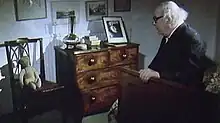 In an interview given to Radio Times Betjeman spoke about his verse autobiography and the making of the film: "I always had filthy reviews for it, and I didn't think it very good." He recalls that Joe Orton was arrested for defacing books in the public library – among them Summoned by Bells – on which he had stuck a pornographic picture. "I wrote it thinking it the best way to write about being young. I was thinking about Tennyson's (probably Betjeman's favourite poet[1]) English Idylls and I had been reading Wordsworth's Prelude and I thought why not put down being a schoolmaster and this kind of thing into very plain blank verse. It's the shorter way of writing prose and I think easier. I think people's lives are interesting only up until they're 21. It's our first humiliations and struggles that are very interesting, so I thought I'd record them. I remember the sensual thrills one has as a child, the feeling of textures and the smell of things. I tried to put that down."[2]
