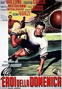 Sunday Heroes (Italian: Gli eroi della domenica) is a 1952 Italian sports drama film directed by Mario Camerini and starring Raf Vallone, Cosetta Greco and Marcello Mastroianni.[1] [2] It was shot at the Titanus Studios in Rome and on location at the San Siro in Milan. The film's sets were designed by the art director Piero Filippone as well as former Italy national team coach Vittorio Pozzo. It features many players from the A.C. Milan team of the era. Vallone had been a professional footballer before turning to acting.