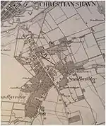 Sundbyvester (Sundby occidentali) and Sundbyøster (Sundby orientali) were originally two villages known from about 1100.[1] They consisting of two rows of farmsteads extending from Amager Road, now Amagerbrogade, roughly where present day Øresundsvej and Englandsvej are found today, separating their farm land to the south from their pastures to the north. In the second half of the 18th century, the area changed character when sailors, craftsmen and workers began to settle in the community which spread along the main road.[2]