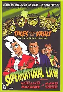 Supernatural Law, previously known as Wolff and Byrd, Counselors of the Macabre, is a comic strip, comic book and web comic series written and illustrated by Batton Lash. The series features the law practice of Alanna Wolff and Jeff Byrd, who specialize in serving the legal needs of monsters and other supernatural beings,[1] or those who find themselves in conflict with such beings. Wolff and Byrd themselves are human, as is their secretary Mavis. The series tagline is "Beware the creatures of the night—they have lawyers!"