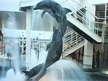 The dolphin sculpture and fountain prior to removal. Main concourse area.