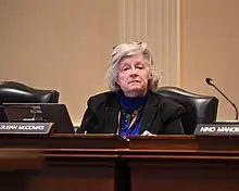 McComas is a member of the Harford County Delegation.[1] She became the delegation's chair in 2008, during which she controversially hired her aide to be the delegation receptionist for the 2009 legislative session.[15] McComas was ousted as chair in February 2009, after its members voted to replace her and vice chair Rick Impallaria with J.B. Jennings as chair and H. Wayne Norman Jr. as vice chair.[16] She challenged the vote to remove her,[17] and later filed an ethics complaint and rules violation claim against the delegation's new leaders, claiming that the vote to remove her as chair violated the Open Meetings Act and the Roberts Rules of Order.[18][19] McComas was elected as the delegation's vice chair in 2021.[1]