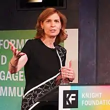 Susan Crawford keynotes a Knight News Challenge event in New York City, November 2017.