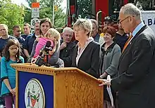 Dr. Shaw at a press conference with Senator Chuck Schumer in Albany, NY, in support of his bill, The Children and Fire Fighter Protection Act