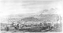 At El Paso del Norte on 17 February 1847 they lodged at the house of the priest Ramón Ortiz y Miera, a spacious house surrounded by orchards and vineyards. A fierce nationalist, father Ortiz had been taken prisoner by Colonel Doniphan for encouraging armed resistance to the U.S. army. However, he was known for his hospitality to visitors.[16][17] She was struck by the civilized atmosphere of the house, and particularly taken with a little girl who, "...only six years of age, carries with her the dignity of our girls of eighteen. It attracted my attention particularly the evening I came, with the same ease of a lady much accustomed to society, she entered the room, with a polite bow and 'Bonus tardes',[lower-alpha 2] shook hands with me and seated herself."[18]