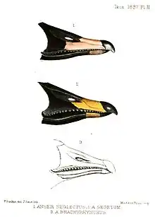 Bill of Sushkin's goose (above) compared with that of Anser serrirostris rossicus (middle) and Anser brachyrhynchus (below)