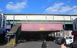 The Sutter Avenue–Rutland Road station is a station on the IRT New Lots Line of the New York City Subway, located at the intersection of Sutter Avenue, Rutland Road, and East 98th Street at the border of East Flatbush and Brownsville, Brooklyn. It is served by the 3 train at all times except late nights, when the 4 train takes over service. During rush hours, occasional 2, 4 and 5 trains also stop here.[3]
