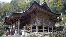 Suwa Jinja (諏訪神社) is a Shinto shrine in Chizu, Tottori Prefecture, Japan. Known from the time of the Mongol invasions, the shrine is celebrated for its Zelkova and momiji. The Honden dates to 1832.[1] The Onbashira Festival, held in the Year of the Tiger and Year of the Rooster, sees pillars of Japanese cedar carried through the town.[2]