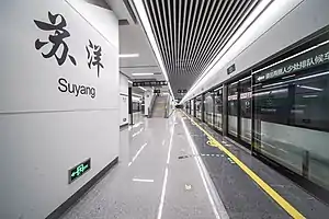 Suyang station (Chinese: 苏洋站; pinyin: Sūyáng zhàn; Fuzhounese: [su˥˥ yoŋ˥˧]) is a metro station on Line 2 of the Fuzhou Metro in Suyang Village, Minhou County, Fuzhou. It is the current western terminus on the line and located on the east of Zhuqi Depot, a depot of the line, and the north of G316 highway. It was opened on April 26, 2019.[1]