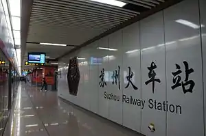 Suzhou railway station (Chinese: 苏州火车站) is a station on Line 2 of Suzhou Rail Transit. The station is located at the Suzhou railway station in Gusu District of Suzhou. It started service on December 28, 2013 with the opening of Line 2.[1][2][3]