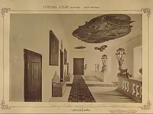 In 1622, the estates of Čabraď castle and Svätý Anton came in the hands of the House of Koháry family, a family who gained its wealth due to its loyalty to the House of Habsburg.[1] They replaced medieval castle by a two-winged manor during the 17th century.[2][1] In 1744, count Andrew Kohary (1694-1757) decided to move his ancestral seat from Čabraď castle to Svätý Anton.[1] As part of this move, he reconstructed the manor into a four-winged manor house with an inner courtyard between 1744 and 1750.[1][2][3] The baroque interior was finished in 1752.[1] He was succeeded by his sons Nikolaus (1721-1769), Ignac (1726-1777), and Jan.[2] The last Kohary to live at Svätý Anton was Ferenc József (17767-1826), who was elevated to prince by Emperor Francis I of Austria in 1815.