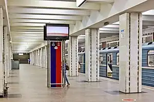 Sviblovo (Russian: Свиблово) is a Moscow Metro station in the Sviblovo District, North-Eastern Administrative Okrug, Moscow. It is on the Kaluzhsko-Rizhskaya Line, between Botanichesky Sad and Babushkinskaya stations.
