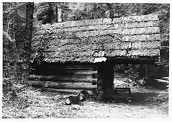 The Swamp–Meadow Cabin (east) is in North Cascades National Park, in the U.S. state of Washington. Constructed sometime in the early 1910s by the North Coast Mining and Milling Company, the cabin was a warm season residence used by company employees for storage and residence while working their mining claims on Thunder Creek.[2] The cabin was constructed plainly of rounded hewn logs, square notched at the corners. The cabin is 15 by 18 ft (4.6 by 5.5 m) with an offset door at the south end, above which it is sheltered by the large overhanging extension of a gable roof which is wood shingled.[2] Swamp–Meadow Cabin (east) is near Swamp–Meadow Cabin (west), and both were placed on the National Register of Historic Places in 1989.[2]