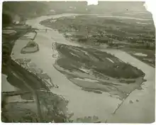 The island was first noted as "Willow Island" by the United States Exploring Expedition in 1844.[2][3] River traffic on the Willamette was impeded by a bar near the island, and annual dredging by the U.S. Army Corps of Engineers was required to maintain a navigable channel.[4] A 1914 Oregonian article reported that the Portland Commission of Public Docks was unanimously in favor of removing the island, instead of developing it for commerce.[5][6][7]