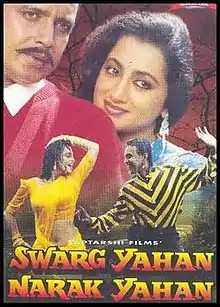 Swarg Yahan Narak Yahan (transl.Heaven is here, hell is here) is a 1991 Indian Hindi-language film directed by Vimal Kumar, starring Mithun Chakraborty, Shilpa Shirodkar, Sumalatha, Gulshan Grover, Adi Irani and Kader Khan. Mithun Chakraborty played a dual role in the film of both father and son in opposing characters. The film depicts the dynamics of upbringing of children by parents and how few wrong practices of parents can misguide their children. The movie was well received at the box office. With south actress Sumalatha it was her first film with Mithun Chakraborty, later they both appeared in the 1993 film "Pardesi".