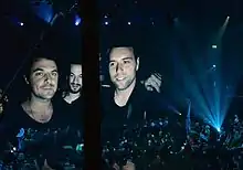 Swedish House Mafia (SHM) are a Swedish house music supergroup consisting of Axwell, Steve Angello, and Sebastian Ingrosso. The group officially formed in late 2008, were placed at number ten on the DJ Mag Top 100 DJ Poll 2011,[4] and have been called "the faces of mainstream progressive house music",[5] while being credited for "setting the tone for the EDM boom of the early 2010s, more than any other act in modern dance music".[1] In 2012, they were ranked at number twelve on the DJ Mag Top 100 Poll.[6] The trio is best known for their single, "Don't You Worry Child".[1]