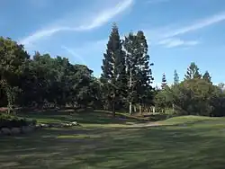 The playground and barbeque areas are located in the central part of the reserve near a bitumen car-park. These facilities are recent. The greater part of this section of the reserve is shaded by large trees which blend with the camphor laurels growing on the embankment.[1]