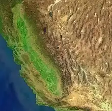 Sycamore Alluvial Woodland is a rare open woodland plant community, or vegetation type, dominated by California sycamore Platanus racemosa, existing only in small parts of California.[1]: 115 It exists only in small areas of California in the foothills of the southern Sierra Nevada range and the California Coastal Range.[1]: 115 It is rare as a plant community, even though California sycamore is a common component of other vegetation types where it is not dominant.[1]: 115 It exists at the base of flat valleys having deep alluvial gravel, where water from the hills hit the flat valley floor having an intermittent stream and large seasonal fluctuations in the water table.[1]: 115 It is a habitat type defined by broad-leafed woodland and stable levels of groundwater.[2] Sycamore Alluvial Woodland is identifiable through open savanna riparian structures, with wide floodplains.[3]