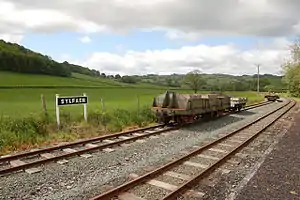 Sylfaen Halt railway station, located in the tiny hamlet of Sylfaen on the A548, is an unstaffed request halt on the narrow gauge Welshpool and Llanfair Light Railway 2+3⁄4 miles (4.4 km) from the Welshpool Raven Square terminus. It has a short platform and waiting shelter.