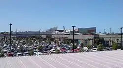 ![]() A view over the main carpark and length of the centre, with the cinemas and railway station at the right rear | |