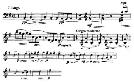 The coda in E minor resumes the style and tempo of the development as it builds up intensely and the movement culminates in two fortissimo outbursts.