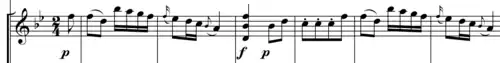 The melody is for the most part entrusted to the first violins, but the first bassoon often doubles it an octave below (while the second bassoon sticks to the usual duty of doubling the cello line in unison).