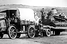 A Renault FT at Târgoviște, towed by a Latil TAR truck