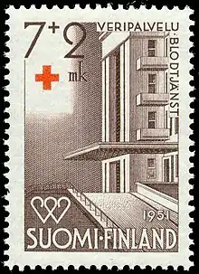 In 1944 the Finnish post office and the Finnish Red Cross published a series of stamps. One of them shows the Finnish Red Cross hospital, acting as Military Hospital 54 at the time. The hospital is now known as the Töölö Hospital.