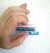 T gauge (1:450 or 1:480) is a model railway scale with a track gauge of 3 mm (0.118 in), referred to as "Three-millimeter gauge" or "Third of N scale". It was introduced at the Tokyo Toy Show in 2006 by KK Eishindo of Japan and went on sale in 2007. It is the smallest commercial model train scale in the world. Since mid-2009, Railway Shop (Hong Kong) is the exclusive licensed manufacturer.