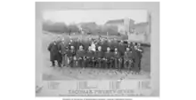 The headline of the Tacoma Daily Ledger on November 4, the day after the expulsion, read: "Gone! Two Hundred Chinese Leave the City – How the People's Request was Enforced."[59] On November 7, a ball was held by Tacoma Turnverein, the city's German society, to celebrate the actions of Mayor Weisbach and the Committee of Fifteen. That same day, Mayor Weisbach, the fire chief, and 25 others who were involved with the expulsion were indicted on felony conspiracy charges. This group would become known as the Tacoma Twenty-Seven. They were escorted to Vancouver, Washington Territory on the morning of November 9.[60] Community members cheered on the 27 as they left, and immediately began raising money for a legal fund.[61][60] Each member of the Tacoma Twenty-Seven stated that they would plead not guilty.[62] By the 12th, the 27 had posted bail and returned to Tacoma, where they were greeted with much fanfare.[63] The trial of the 27 had been set for the first Monday of April in 1886.[64]