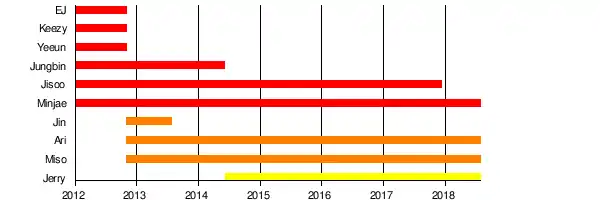 Following the ending of Ta-Dah! It's Tahiti, it was announced that Ari and Hanhee had left the group and would be replaced by Ye Eun and Keezy.[2]