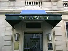 The restaurant was named in a tribute to Guillaume Tirel, called Taillevent, a cook in the 14th century known to have written the first cuisine book in French, Le Viandier, ordered by Charles V of France.