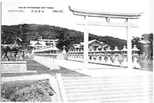 The shrine was originally built at the foot of Kotobuki Hill as Takao Kotohira Shrine (打狗金刀比羅神社) in 1910.[1] It was renamed Takao Shrine in 1920 and moved to the hillside in 1928. In 1932, the shrine received the kensha (県社) rank.