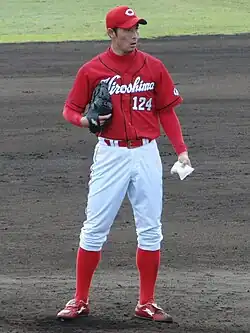 Takaya Kawauchi (河内 貴哉, Kawauchi Takaya, born January 6, 1982 in Yawata, Kyoto, Japan) is a professional Japanese baseball player. He plays pitcher for the Hiroshima Toyo Carp.
