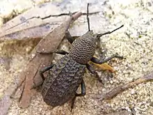 Talaurinus foveatus is a species of weevil found in Australia. Often seen up to 20 mm long with a hard exoskeleton. This insect first appeared in scientific literature in the Transactions of the Entomological Society of New South Wales, published by William MacLeay in 1865. The specific epithet foveatus is derived from the Latin fovea, "having small holes or cavities; pitted".[1][2]