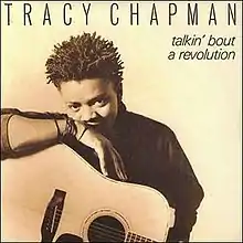 "Talkin' 'bout a Revolution" is the second single from American singer-songwriter Tracy Chapman's self-titled debut album. The politically aware song peaked at No. 75 in the United States as opposed to its predecessor, "Fast Car" which reached No. 6. It also charted in several other countries, reaching the top 40 in Austria, Belgium, France, the Netherlands, and New Zealand. The song received heavy radio play in Tunisia in 2011 during the Tunisian Revolution.[1][2] The song was also used as an unofficial theme for Vermont Senator Bernie Sanders' 2016 presidential campaign, played before speeches at his campaign rallies.[3]