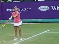 Tanasugarn has been regarded as a grass-court specialist; she won most matches on that surface including two WTA International titles.[3] Tanasugarn at some point held the record of the most singles matches won on grass court among active players. As of 8 July 2013, she was second (with 84 wins) among active players, and 12th on the all-time list.[4]