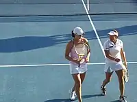 Tanasugarn produces her best game and strategy when she performs on grass.[4][6] She is also known for her accurate flat ground strokes and a heavy slice serve for which are particularly effective on grass, Venus Williams has given an interview regarding Tanasugarn's game after their quarterfinal match in 2008 Wimbledon Championships: "I think her game is really suited for the grass. Her serve is a slice that turns into you and it stays low. Her shots are really, really low to the ground. A lot of time I think I was battling just to stay down on the shots, and I felt good when I got one up in my strike zone".[7] Kim Clijsters has once described Tanasugarn as a "tricky player".[8] Tanasugarn's weakness has always been her serve.[9]