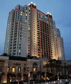Tampa Marriott Water Street is a 326-foot (99 m) high rise hotel in Tampa, Florida near the Tampa Convention Center It was completed in 2000 and has 27 floors with 750 rooms and 50,000 square feet (4,600 m2) of meeting space. It is the city's largest hotel and the 13th tallest in Tampa.[1][2]