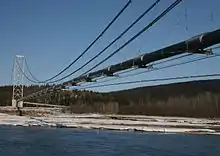 The Trans-Alaska Pipeline crosses beneath several rivers, but has a pipeline bridge where it crosses the Tanana just north of Delta Junction.