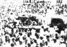 During his tenure as Premier, Prakasam publicly declared his intention to scrap all existing textile industries in the province and replace them with khadi manufacturing and weaving units.[3] In February 1947, Communists broke into a full-scale revolt.[3] On Vallabhbhai Patel's advice, Prakasam responded with widespread arrests and tough crackdown on arsonists.[3]